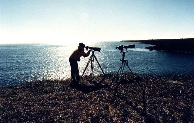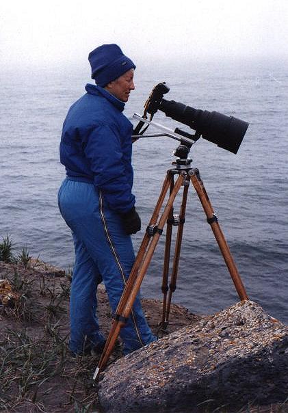 Susanne filming the birds for the film "Birds of the Pribilof Islands".